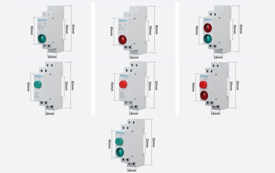 DIN ريل جبل اشارو لائيٽ LED سگنل چراغ، سيريز AC 50Hz / 60Hz تي لاڳو آهي
