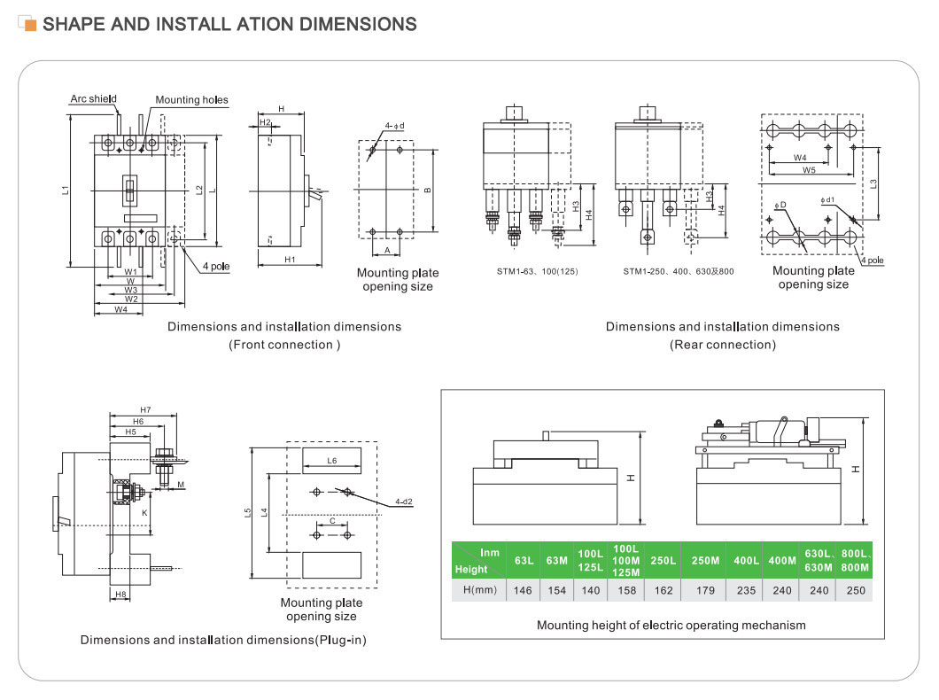 | ماڊل | STM1-125 | STM1-250 | STM1-400 | STM1-630 | STM1-800 | STM1-1250 | |||||||||||||